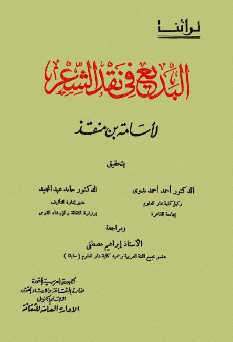 كتاب البديع في نقد الشعر لأسامة بن منقذ تحقيق بدوي وحامد Pdf